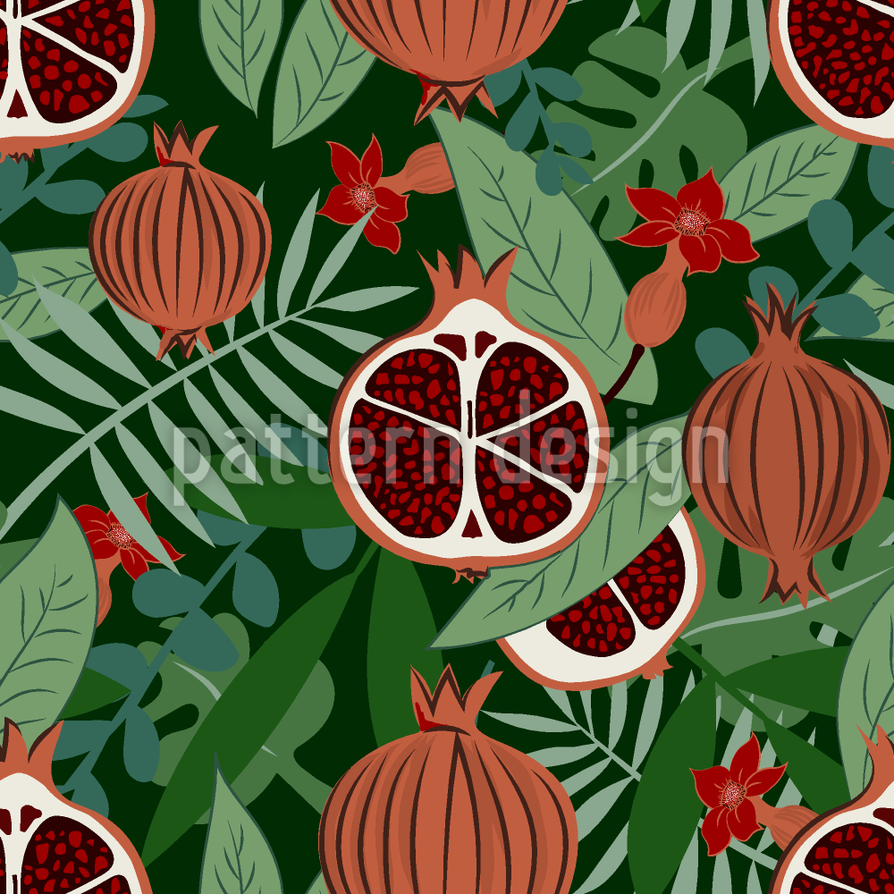 | 描述 | 自然图案以石榴果实和不同的丛林花朵和树叶为特色。 | ||