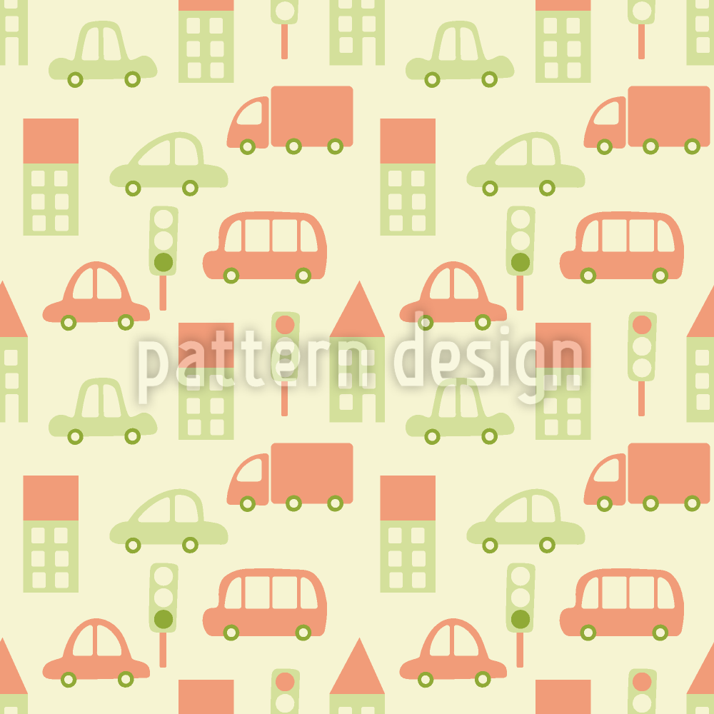 城市中的卡通车 无缝矢量模式设计