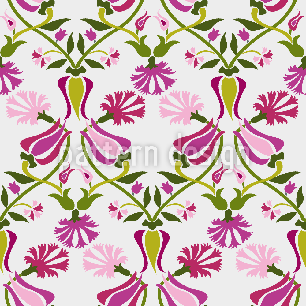 郁金香和康乃馨粉红 无缝矢量模式设计