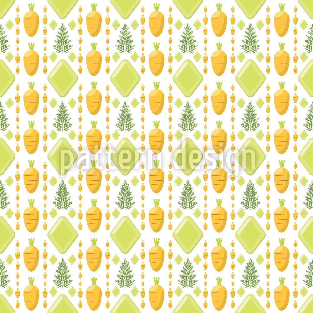 异想天开的胡萝卜和树瓷砖图案 无缝矢量模式设计