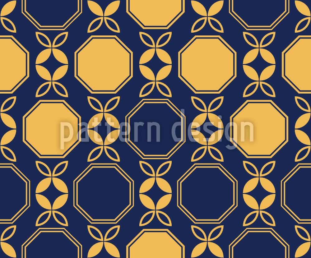 | 描述 | 一款富丽堂皇的对称构图,采用金色八角形镜框和几何风格的花卉图案。 | ||