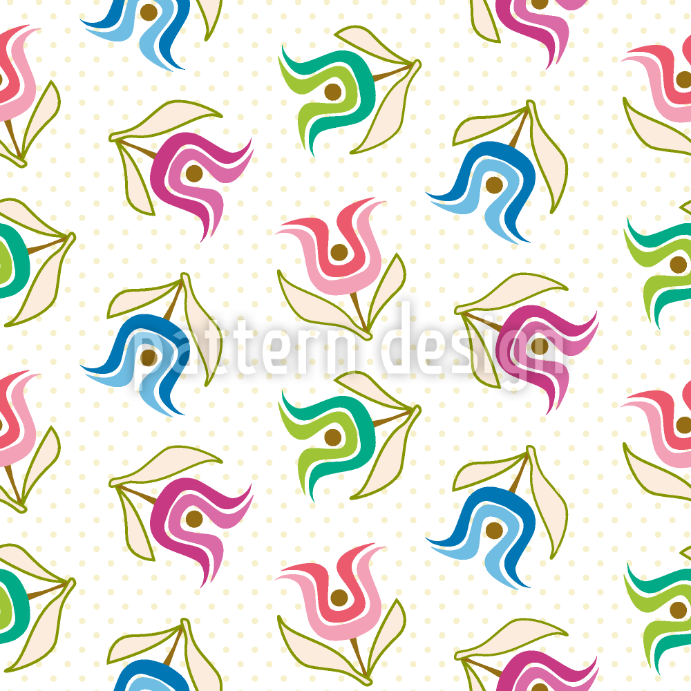 甜蜜复古郁金香 无缝矢量模式设计